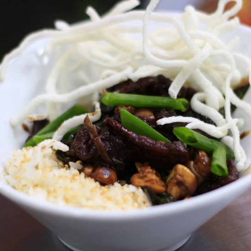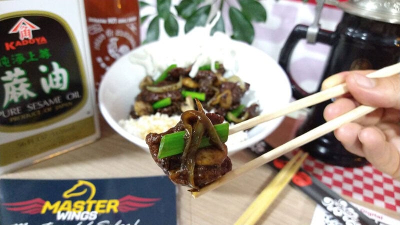 El lomo de res sellado en salsa soya (carne Mongolian) es una receta muy conocida que se sirve en restaurantes Chino-Americanos, la carne es cortada en láminas delgadas, salteada con vegetales (En Master Wings con Champiñones, Julianas de Cebolla Blanca y Cebollín Verde), la salsa obscura a base de salsa Soya es delicadamente caramelizada sobre la Carne hasta envolverla completamente, esta preparación está basada en recetas a la BBQ de la Cocina de Pekín o del Noreste. Su método de cocción llamado Oil Velveting, es llevado el aceite a una temperatura entre los 350 a 400° F. Cocinar las rebanadas de carne a esta temperatura hace que se selle perfectamente el marinado y permite mantener su jugosidad al interior de la pieza. Velveting es la palabra para describir una textura “Aterciopelado”. Una de las razones del porque este plato lleva el nombre de “Carne Mongolian” es que la mejor carne que se podía obtener en toda China provenía de Mongolia y también porque el termino “Mongol” da a entender como un plato “exótico”. Comúnmente este plato es acompañado con Fideos, Noodles o arroz blanco cocido al vapor. Para nuestra preparación de la Carne Mongolian en “Master Wings” respetamos el procedimiento y la técnica de toda la influencia de la Cocina del Noreste de Pekín/Beijing (Incluye Mongolia Interior), esta cocina se caracteriza por sus exóticos ingredientes como la Salsa Hoisin, Ajo, Ajonjolí, Cebollines y el amplio uso de la Salsa de Soya (Soy Sauce). De esta manera en general sus sabores tienden a ser más ligeros y suaves, menos sazonada y con mucho menos aceite que las regiones Occidentales.